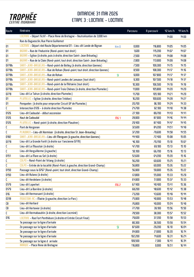 ● 2 sprints intermédiaires : à Saint-Jean-Brévelay et lors du deuxième passage sur la ligne d’arrivée à Locminé
